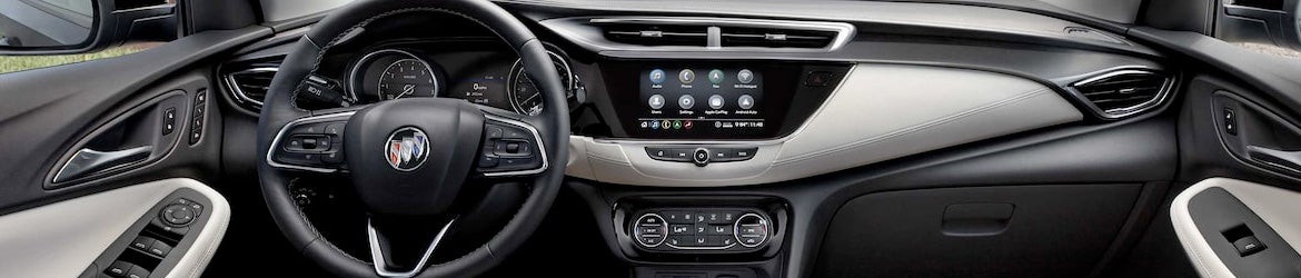 An 8-inch touch screen sits on the dashboard of the Encore GX. This touch-screen display works with wireless Apple CarPlay and Android Auto, allowing drivers to sync their smartphone to the SUV to play their saved music and podcasts or use voice commands to make phone calls and send text messages. Bluetooth connectivity and two USB ports are also standard, as are satellite radio and a six-speaker stereo system. If you desire more infotainment technology, you can enhance the Encore GX to include a seven-speaker Bose audio system, HD radio, built-in navigation, and wireless device charging.