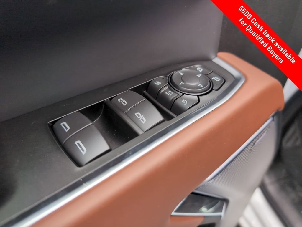 - Outside power-adjustable vertical trailering mirrors with power folding/extending auto-dimming driver and passenger upper glass