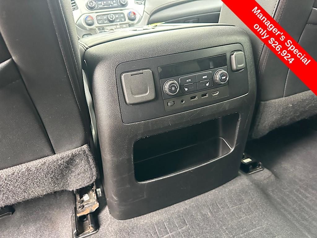 Equipped with Enhanced Driver Alert Package (Automatic Emergency Braking, Forward Collision Alert, IntelliBeam Automatic High Beam On/Off, and Lane Keep Assist w/Lane Departure Warning), License Plate Front Mounting Package, Memory Package, Open Road Package (Power Tilt-Sliding Sunroof w/Express-Open/Close and Rear Seat Blu-Ray/DVD Entertainment System), Preferred Equipment Group 4SA (4-Wheel Antilock Disc Brakes, 5 Auxiliary 12-volt Power Outlets, Black Assist Steps w/Chrome Strip, Hands Free Power Programmable Rear Liftgate, Heated Leather-Wrapped Steering Wheel, Inside Rear-View Auto-Dimming Mirror, Lane Change Alert w/Side Blind Zone Alert, Passive Entry System, Power Release 2nd Row 60/40 Split-Folding Bench Seat, Power Tilt & Telescopic Steering Column, Power-Adjustable Pedals For Accelerator & Brake, Push Button Keyless Start, Rear Cross Traffic Alert, Remote Keyless Entry, and Universal Home Remote), Premium Smooth Ride Suspension Package, 4WD, 20 x 9 Polished Aluminum Wheels, 3.08 Rear Axle Ratio, 3rd row seats: split-bench, 4-Wheel Disc Brakes, 9 Speakers, ABS brakes, Adjustable pedals, Air Conditioning, Alloy wheels, AM/FM radio: SiriusXM, Apple CarPlay/Android Auto, Auto High-beam Headlights, Auto-dimming door mirrors, Auto-dimming Rear-View mirror, Automatic temperature control, Bose Premium 9-Speaker System, Brake assist, Bumpers: body-color, CD Player, CD player, Compass, Delay-off headlights, Driver door bin, Driver vanity mirror, Dual front impact airbags, Dual front side impact airbags, Electronic Stability Control, Emergency communication system: OnStar and GMC connected services capable, Exterior Parking Camera Rear, Front anti-roll bar, Front Bucket Seats, Front Center Armrest, Front dual zone A/C, Front fog lights, Front reading lights, Front wheel independent suspension, Full-Feature Reclining Bucket Seats, Fully automatic headlights, Garage door transmitter, Heated & Ventilated Driver & Front Passenger Seats, Heated door mirrors, Heated front seats, Heated rear seats, Heated steering wheel, Illuminated entry, Leather steering wheel, Low tire pressure warning, Memory seat, Occupant sensing airbag, Outside temperature display, Overhead airbag, Overhead console, Panic alarm, Passenger door bin, Passenger vanity mirror, Pedal memory, Perforated Leather-Appointed Seat Trim, Power door mirrors, Power driver seat, Power Liftgate, Power passenger seat, Power Release 2nd Row Bucket Seats, Power steering, Power windows, Premium audio system: IntelliLink, Radio: AM/FM/SiriusXM, Radio: AM/FM/SiriusXM w/Navigation, Rain sensing wipers, Rear air conditioning, Rear anti-roll bar, Rear reading lights, Rear seat center armrest, Rear window defroster, Rear window wiper, Remote keyless entry, Roof rack: rails only, Security system, SiriusXM NavTraffic, SiriusXM Radio, Speed control, Speed-sensing steering, Split folding rear seat, Spoiler, Steering wheel memory, Steering wheel mounted audio controls, Tachometer, Telescoping steering wheel, Tilt steering wheel, Traction control, Trip computer, Turn signal indicator mirrors, Variably intermittent wipers, Ventilated front seats, Voltmeter, and Wheels: 18 x 8.5 Bright Machined Aluminum.