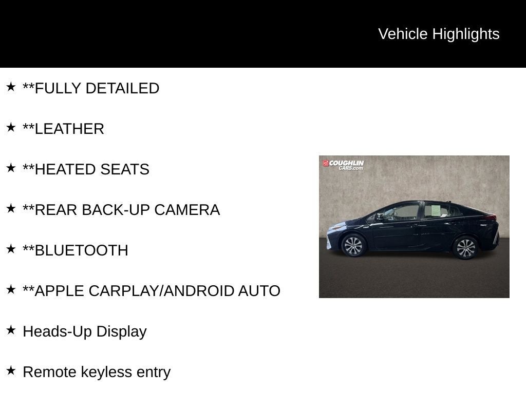 This 2021 Toyota Prius Prime Limited is a remarkable hybrid vehicle that offers exceptional fuel efficiency, advanced technology, and a refined driving experience. With its sleek black exterior and an impressive array of premium features, this Prius Prime is the perfect choice for the eco-conscious driver seeking a sophisticated and practical transportation solution.