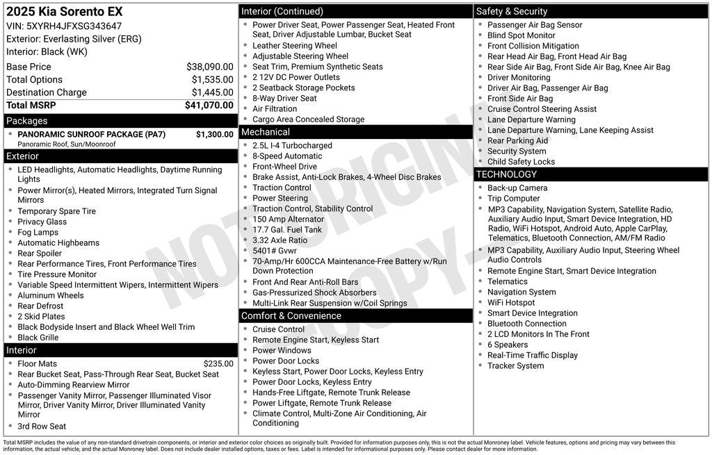 This 2025 Kia Sorento EX is an exceptional value, offering the latest in technology, comfort, and safety features in a stylish and capable midsize SUV. Visit Coughlin Kia of Lewis Center today to experience this remarkable vehicle firsthand and discover why it should be your next family adventure partner.