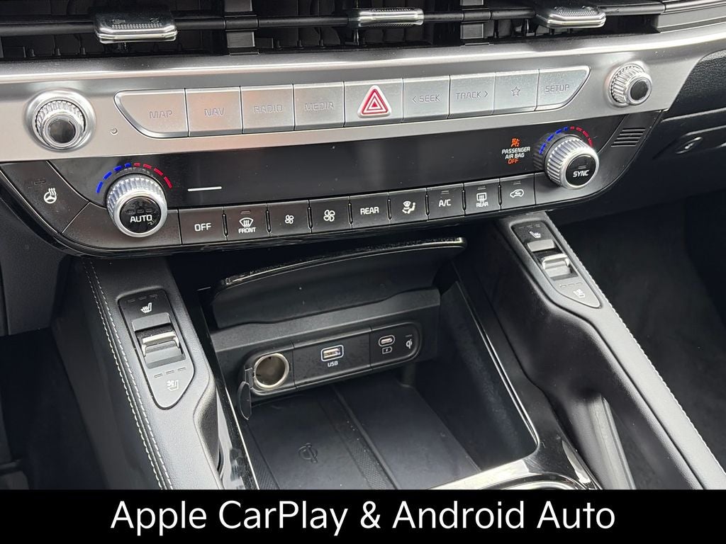 Stepping inside, you'll appreciate the well-appointed cabin featuring premium amenities such as Front Dual Zone A/C, Rear Air Conditioning, Power Driver Seat, Power Liftgate, Auto High-Beam Headlights, Apple CarPlay & Android Auto, Heated Front Seats, Ventilated Front Seats, and a Panoramic Sunroof. This Telluride also boasts a suite of advanced safety technologies, including Blind Spot Monitoring, Rear Cross-Traffic Alert, and Forward Collision Avoidance Assist, providing you and your loved ones with added peace of mind on the road.