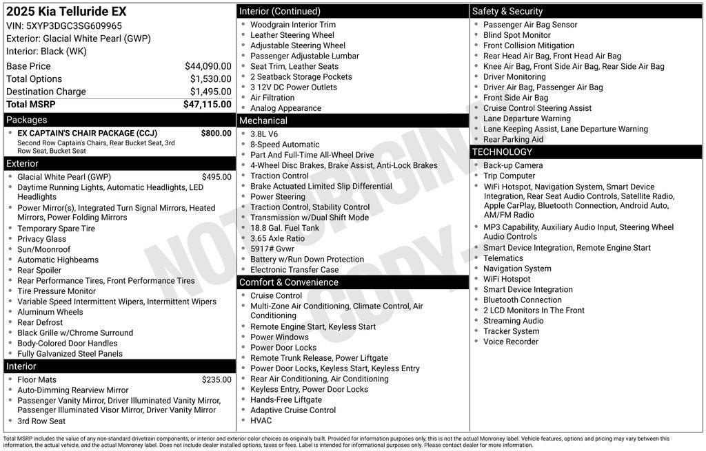 As a Kia Certified Pre-Owned vehicle, this 2025 Telluride EX has undergone a rigorous 165-point inspection and comes with a comprehensive warranty package, including a 12-month/12,000-mile Platinum Coverage limited warranty and a 120-month/100,000-mile powertrain limited warranty from the original in-service date. Additionally, you'll enjoy the benefits of Roadside Assistance, a $50 warranty deductible, and a 3-month Sirius XM trial subscription.